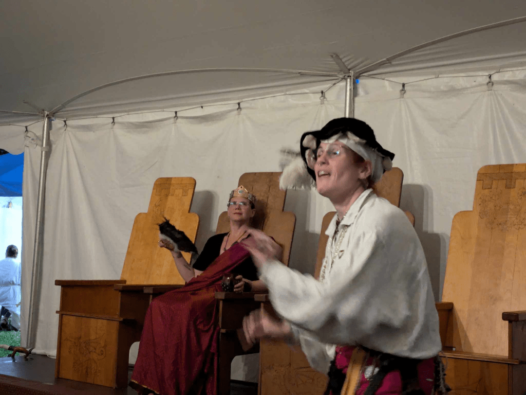 From there I hauled tush to a few tents over where I was teaching my Bardic 101 class. This class is so important for newer folks and I wish I had a class like this when I started. When I started in the SCA 14+ years ago, I didn’t really have a path or anyone I could super talk to about Bardic. I found some folks a few years later, but this class would have been a great guided tour and I am glad to keep offering it. I had 12 people attend this class and a few contact me after for more information. That is always a thrill.