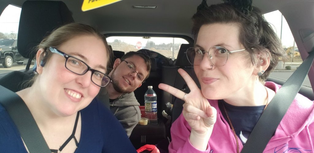 Dinner and camaraderie afterwards and then the voyage home. I have the best people in my life. (Also, look how cute my emotional support husband is!)