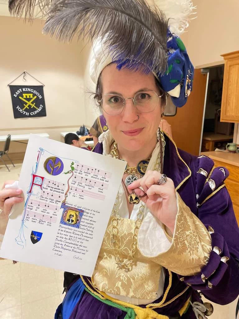 I put out monthly challenges, trying to inspire folx to capture the history of our kingdom, to capture to memories, to challenges themselves and stretch themselves and mayhap try something new that they hadn’t done before. I taught classes in whatever capacity I could. I ran the ad hoc choir, I ran impromptu rounds circles. I taught privately and I shared my knowledge with anyone who would have me and would listen. I served on the A and S team and I showed the deep breadth of knowledge and information that went into preparing a single piece of performance. I performed at their majesties whim and I filled time in court. I continued to run EKCoP (East Kingdom College of Performers) events and helped established a budget for the college so we could spread our reach. I took a new student.